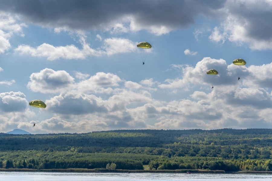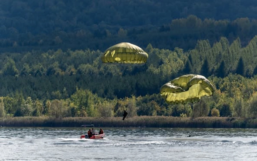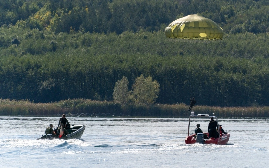 Ústecko – Na jezeře Milada cvičila v úterý 30. září 2025 Armáda České republiky ve spolupráci s integrovaným záchranným systémem. Vojenští výsadkáři trénovali seskok na vodní plochu.