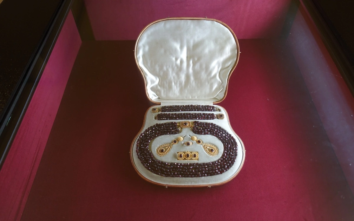 Granátová souprava šperků, která je jedním z nejvzácnějších šperkařských děl v České republice, je umístěna v pomyslném středu expozice. Podle prokázaných gemologických expertíz se jedná o největší známý soubor českých granátů na světě, jehož součástí je i největší broušený český granát v České republice. Šperk patří mezi 10 nejcennějších klenotnických prací v naší zemi.