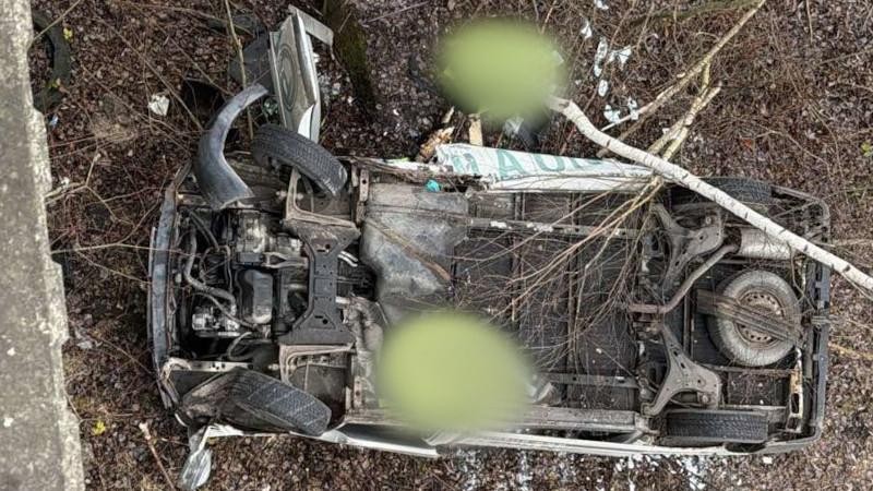 Vozidlo mělo spadnout ze zhruba dvanáctimetrové výšky a dopadlo na střechu. Okolnosti a příčinu nehody na místě vyšetřují policisté.
